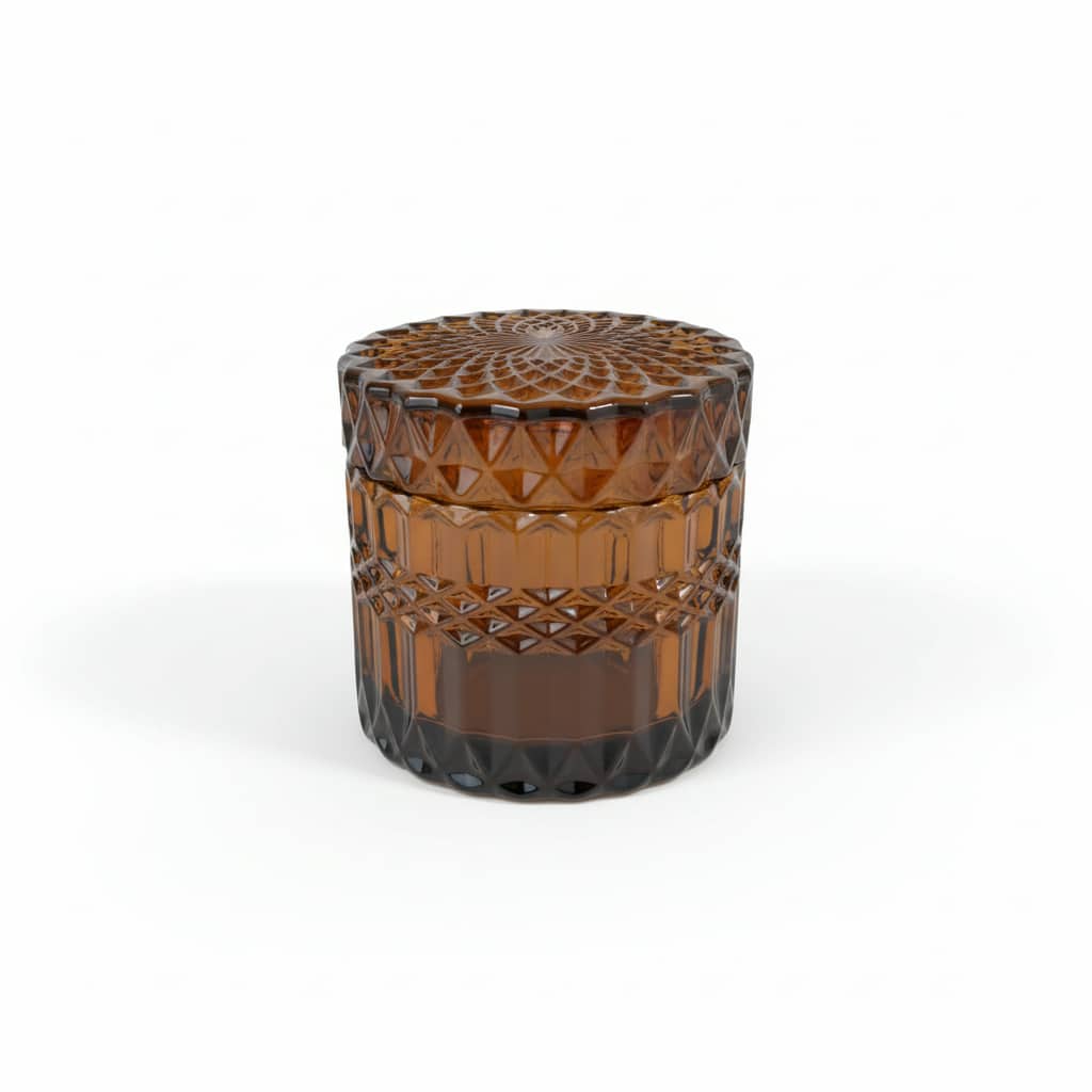 One of the most versatile amber candle jars on the market — the warm colour pairs well with most fragrances, while the cut glass design delivers a premium look with minimal effort. The sturdy, heavy glass ensures consistent professional results every time.