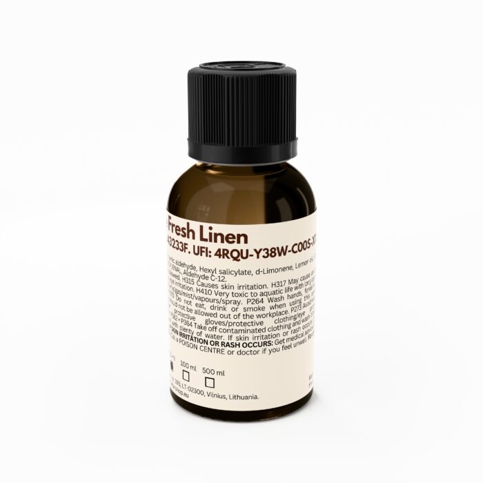 Immerse yourself in the feeling of pure cleanliness with Fresh Linen fragrance oil. The top notes open with a sparkling burst of lemon and crisp green apple, reminiscent of a refreshing morning breeze. At the heart, delicate cotton blossoms, jasmine, and lilies bring lightness and a sense of endless white space – like sun-dried linen fluttering in the air. The composition finishes with a rich base of white musk and velvety sandalwood, leaving a long-lasting, soft talc-like aura.