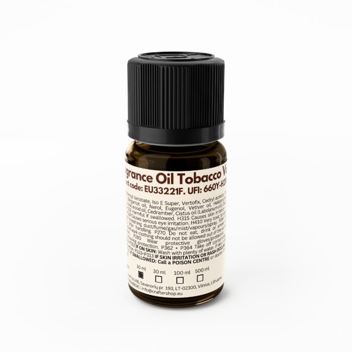 This fragrance oil blends fruity, earthy, and tobacco accords to create a luxurious, opulent scent. The opening reveals fresh citrus notes that bring an uplifting and energetic start. At the heart, silky-sweet neroli blossoms, vetiver, and vanilla pods unfold into a warm, inviting aroma. The fragrance settles into rich, powerful base notes of labdanum, opoponax, Indian Mysore sandalwood, vetiver, and amber crystals — leaving a long-lasting, deep, and sophisticated finish.