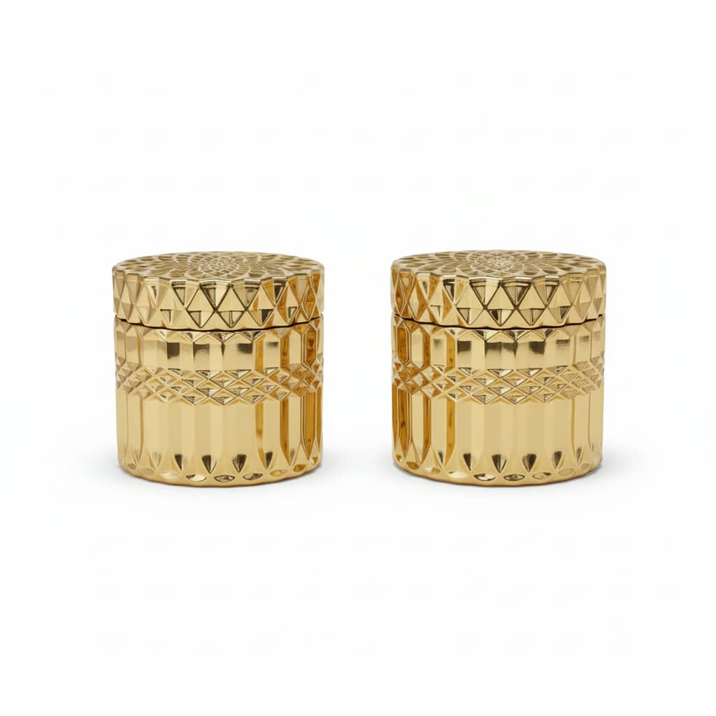 One of the most popular premium candle jars, valued for its weight, quality, and design. The gold colour adds luxury, while the patterned glass instantly sets your product apart from the competition.