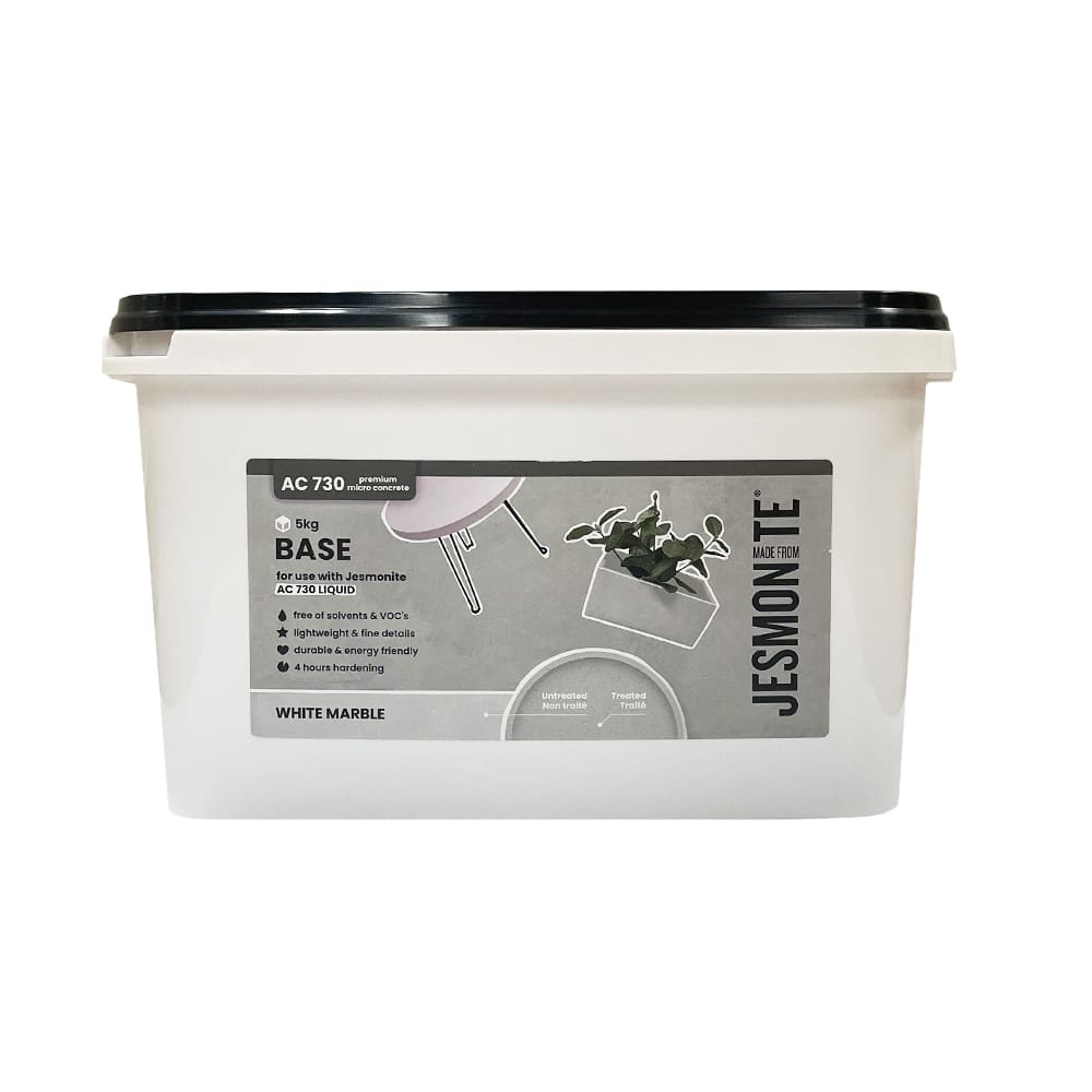 Jesmonite AC730 is a micro-concrete system composed of an acrylic liquid and a mineral base, designed to produce strong, detailed and weather-resistant objects. The decorative aggregates and pigments in the formula allow you to achieve authentic stone textures – especially after surface finishing treatments.